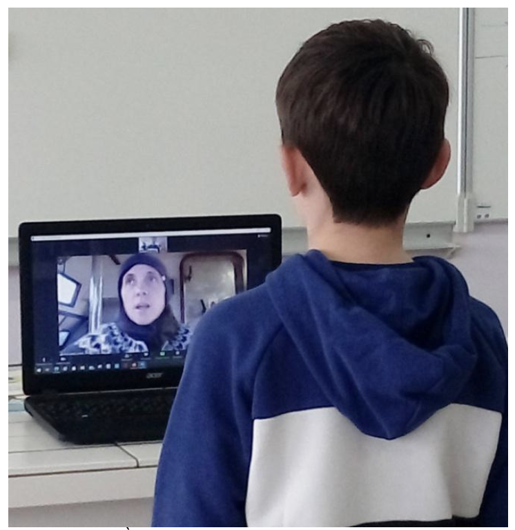 Cette visioconférence a été l’occasion pour les élèves de faire enfin connaissance avec Anne-Claire et de lui poser plein de questions sur son métier et la vie en Islande… Elle a été aussi l’occasion de faire une visite commentée du bateau et de constater que l’eau du port commençait à geler (formation de la banquise).