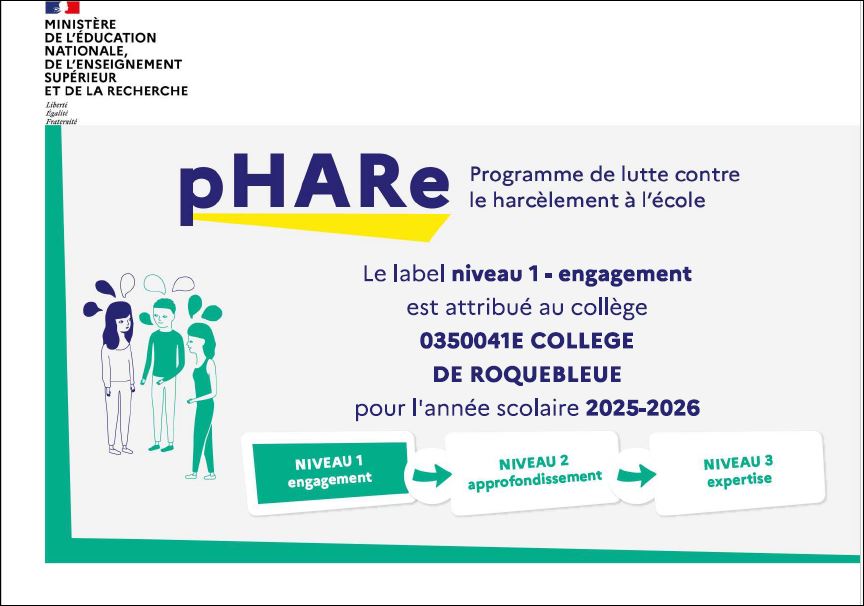 Le collège est labellisé niveau 1 avec notamment la participation à la semaine nationale de lutte contre le harcèlement