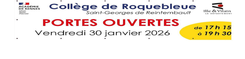 Le collège de Roquebleue et ses personnels seront ravis d’accueillir les futurs élèves de 6e et leur famille, le vendredi 30 janvier 2026 de 17h15 à 19h30. Vous serez accueillis dans l’établissement, pour découvrir les locaux, les différentes disciplines, et les projets. l’ensemble des (…)